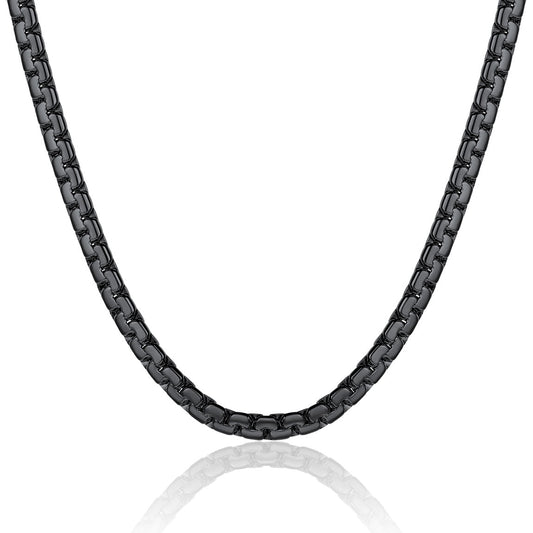 ChainsPro Black Flat Box Chain Male Necklace 14 Inch 4mm Hip Hop Jewelry