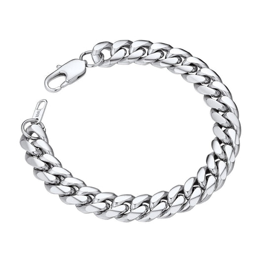 ChainsPro Black Stainless Steel Bracelet Mens Bracelet Chunky Thick Curb Link Chain Bangle 19cm Black