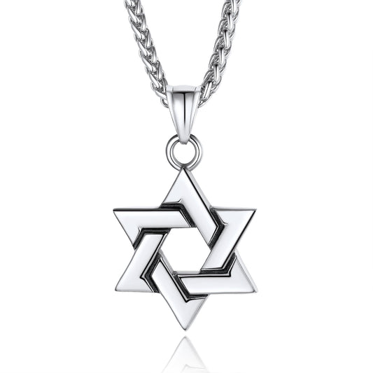 ChainsPro Black Jewish Necklace Stainless Steel Chain Star of David Pendant