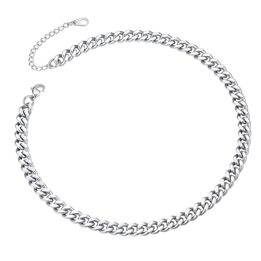 ChainsPro 5mm Men Chain Silver Tone Stainless Steel Curb Cuban Link Necklace Gift