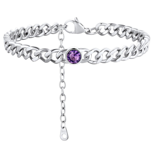 ChainsPro 7mm Cuban Link Anklet for Men Women Birthstone Chain Ankle Bracelets Stainless Steel