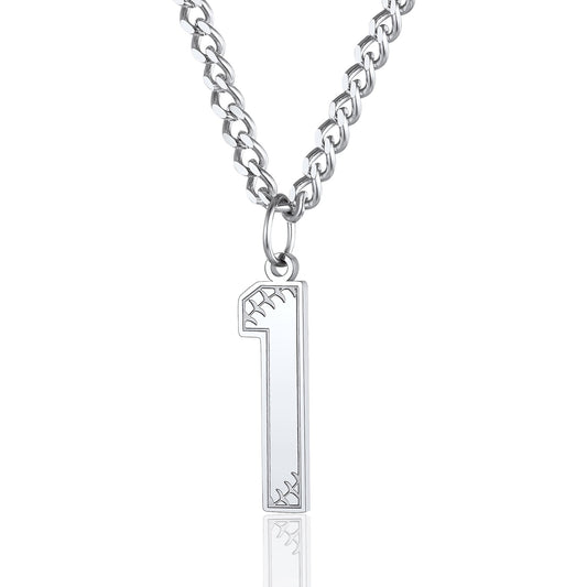 ChainsPro Men Lucky Number Necklace with 3mm Cuban Chain Personalized Sports Jewelry Stainless Steel/Gold Plated