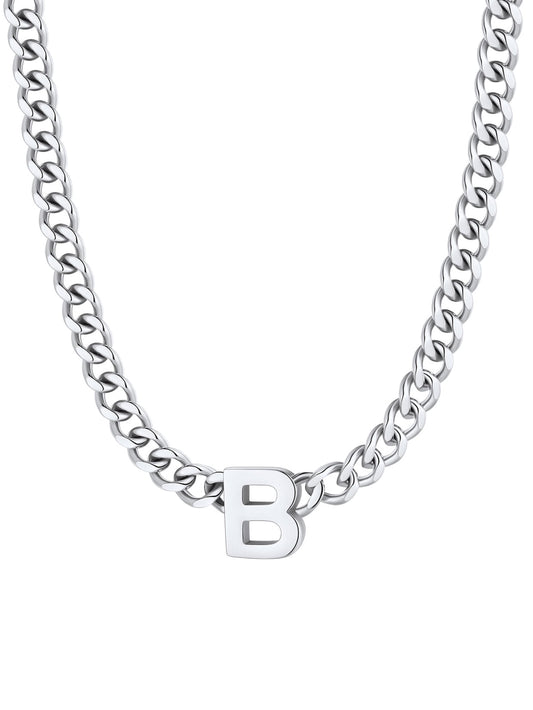 ChainsPro Men A-Z Letter Necklace 7mm Cuban Link Chain Necklace Stainless Steel/Gold Plated/Black