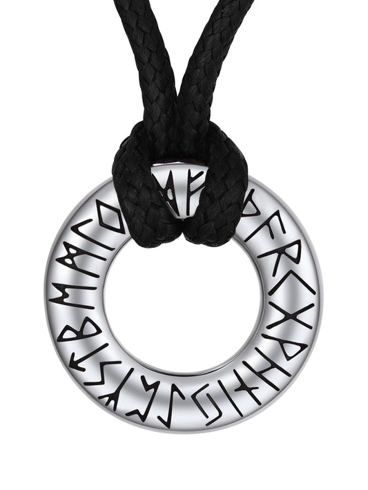 ChainsPro Leather Necklace for Men Stainless Steel Viking Nordic Ring Rune Pendant Norse Necklace