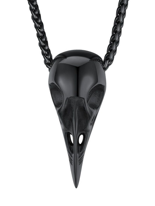 ChainsPro Mens Viking Necklace Smooth Raven Skull Necklace for Men Nordic Jewelry