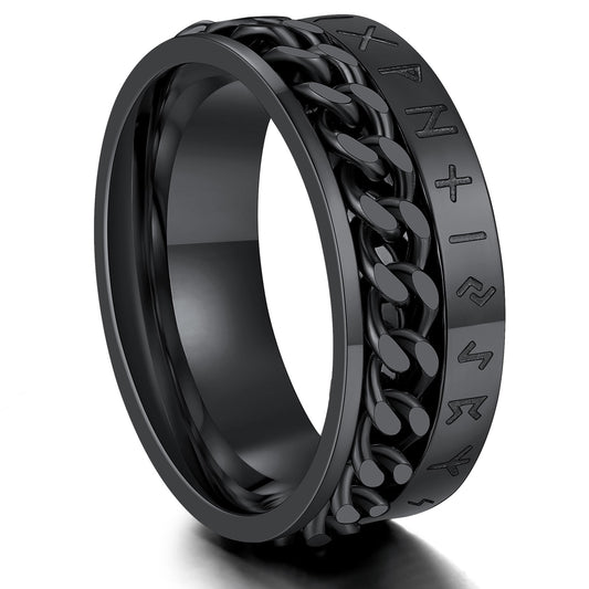 ChainsPro Viking Rune Spinner Rings for Men/Women Size #7-#14 Chain Link Fidget Ring Black