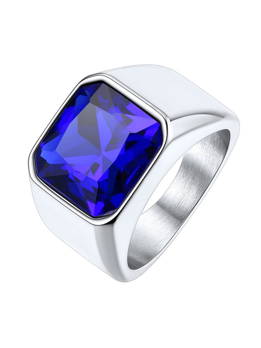 ChainsPro Bright Stone Vibrant Square Signet Rings for Men Stainless Steel/Gold Plated/Black