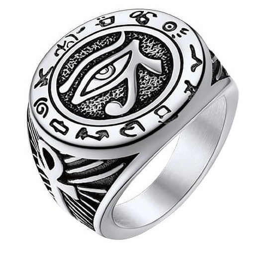 ChainsPro Men/Women Ankh Cross Eye of Ra Rings Egyptian Jewelry Mythology Ring Stainless Steel