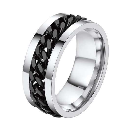 ChainsPro Stainless Steel Men Rings Size 8 Steel Chain Link Spinner Rapper Rings for Men