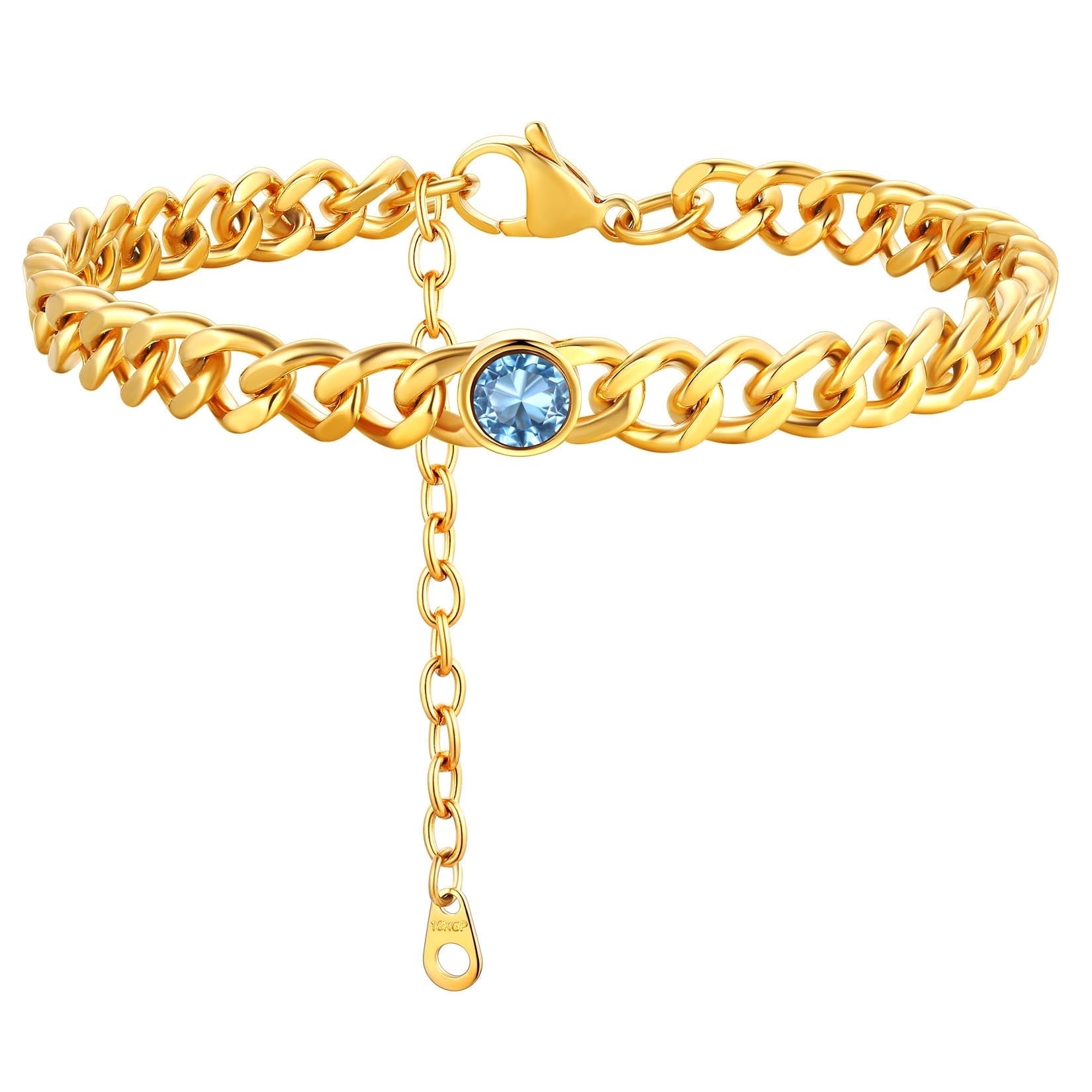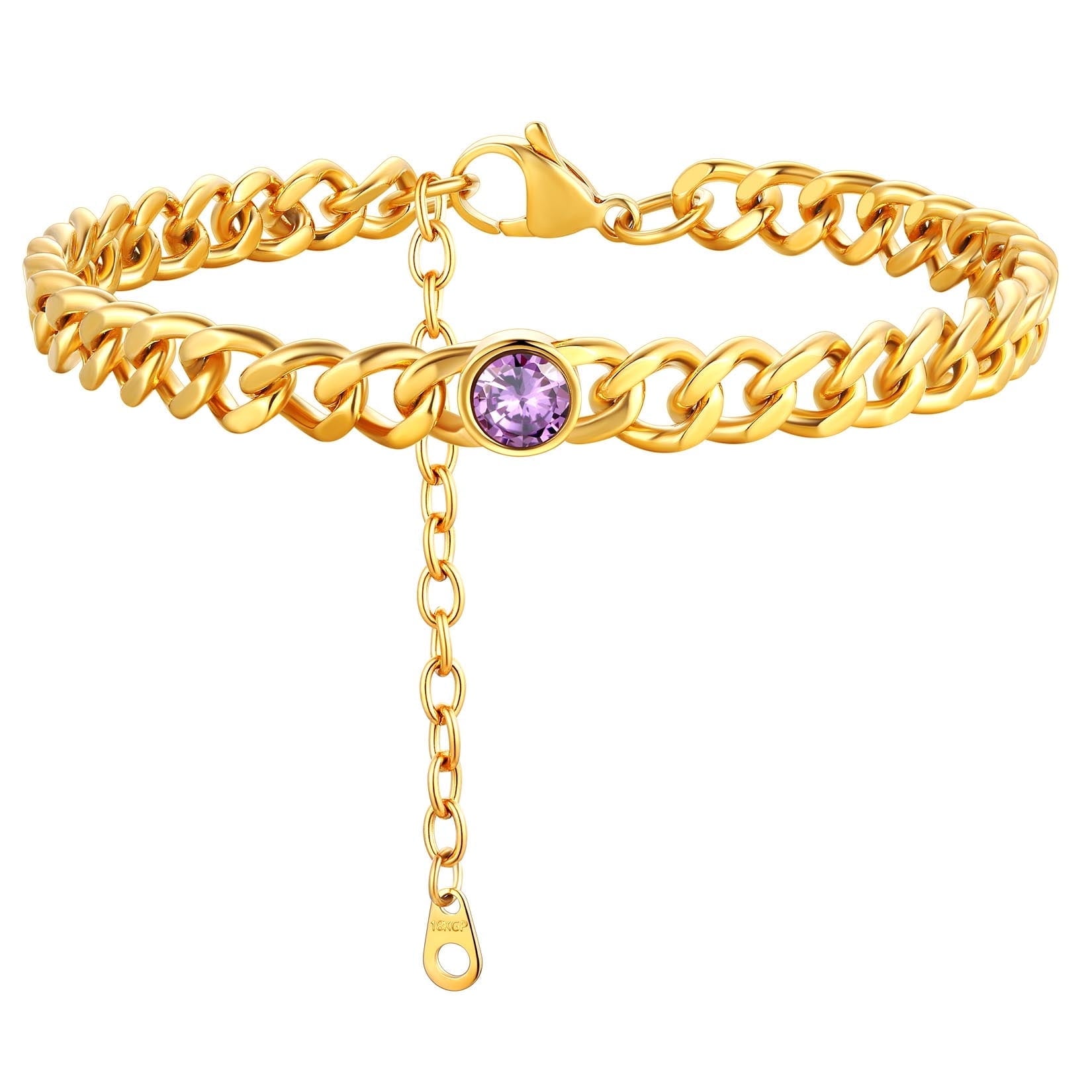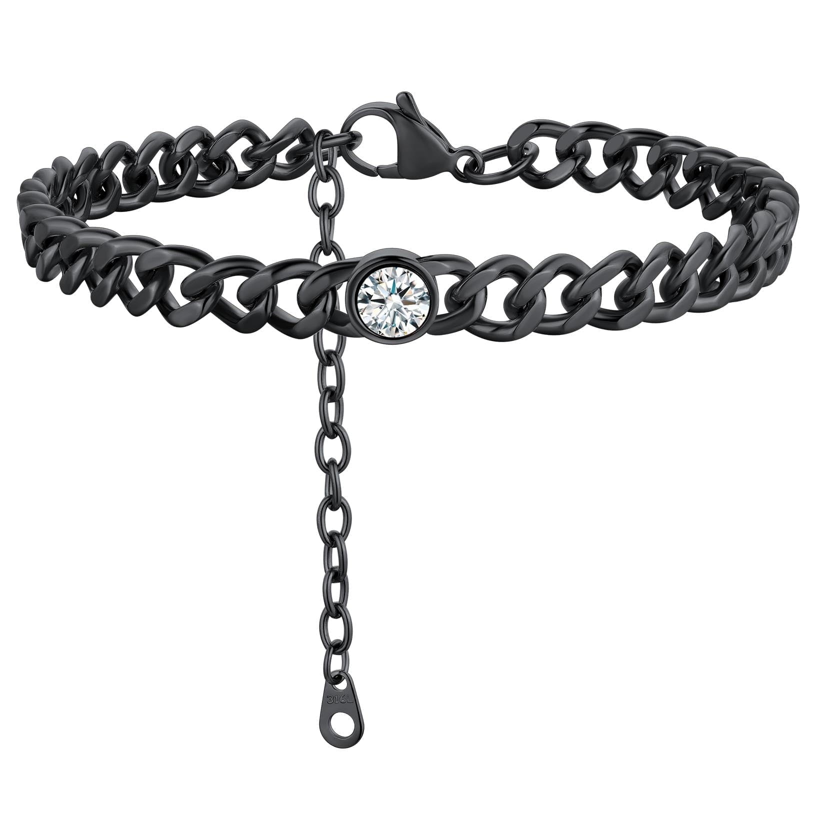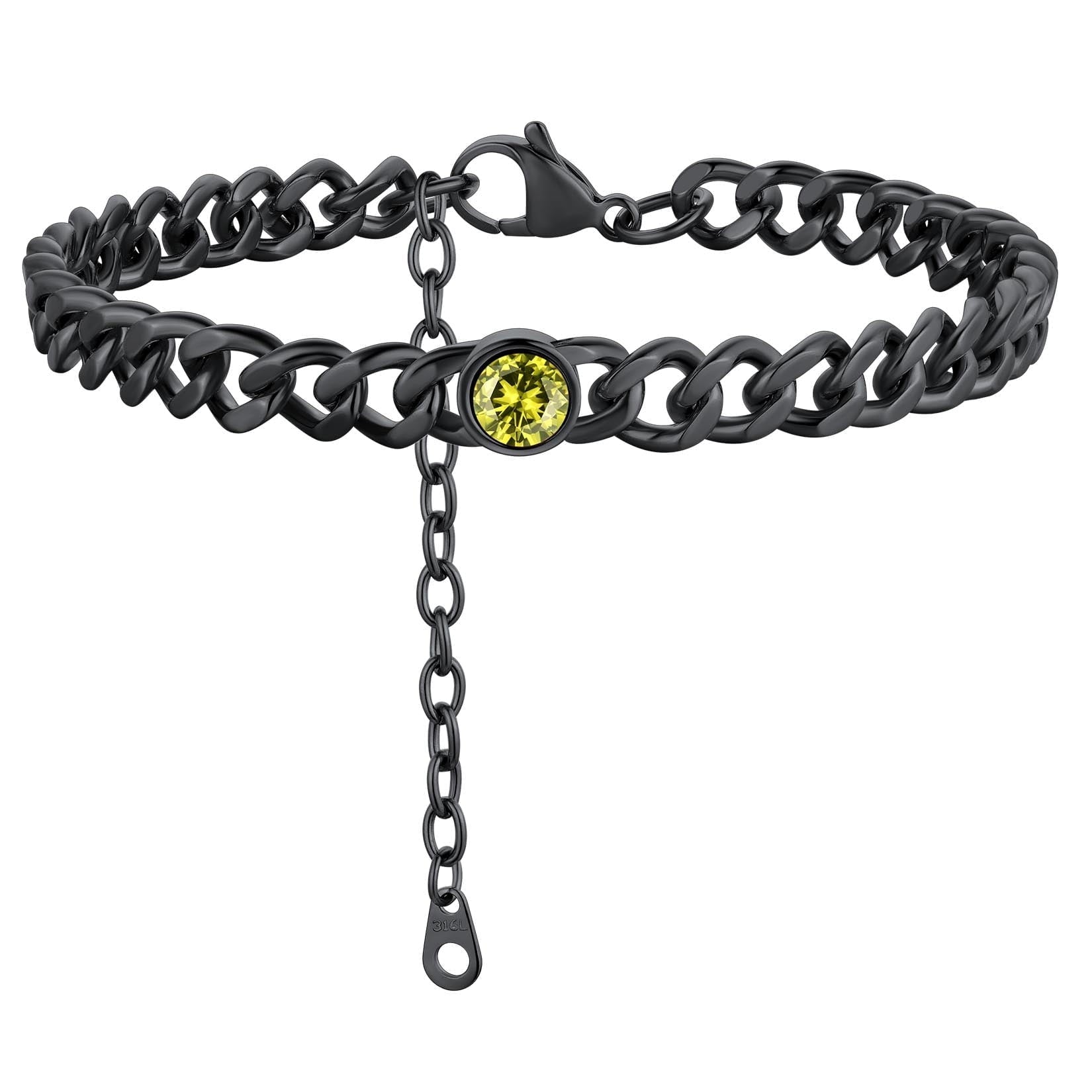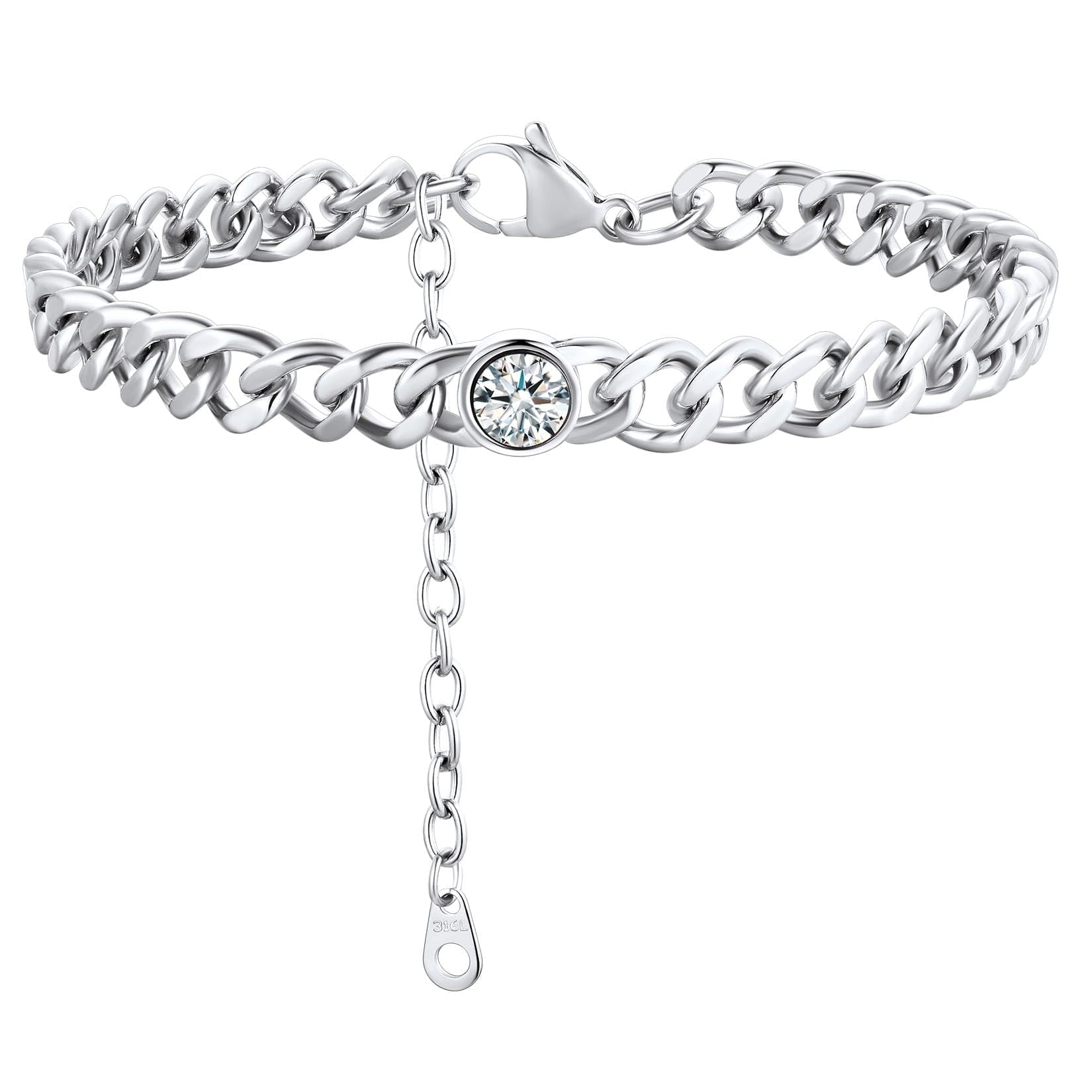 ANKLETS FOR MENS/WOMENS -- Crafted in 316L stainless steel. This mens/womens curb chain measures 7mm wide 8 inches length and available in your choice of 12 months birthstone. Includes a durable lobster clasp to ensure your chain stays secure at all times. It is designed and crafted to have the perfect weight, length, and shine, creating an men's accessory that can be worn with anything.