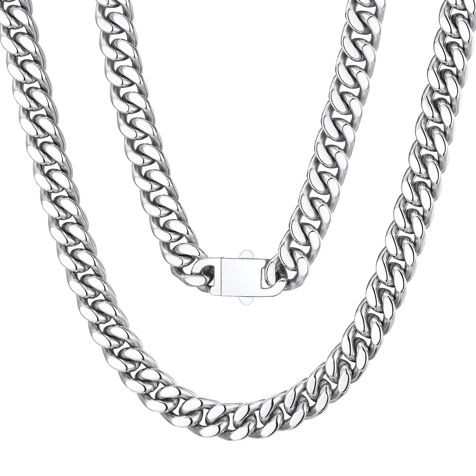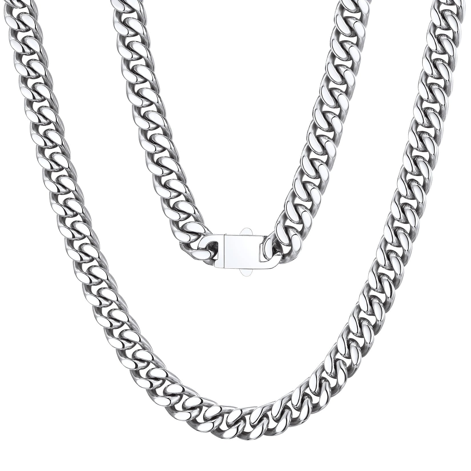 NECKLACE FOR MENS/WOMENS -- Crafted in 316L stainless steel. Sturdy construction, well-made curb chain necklace, great looking with fold over clasp. Chunky hiphop jewelry. Strong and sturdy. Nice weight and very comfortable on your neck.