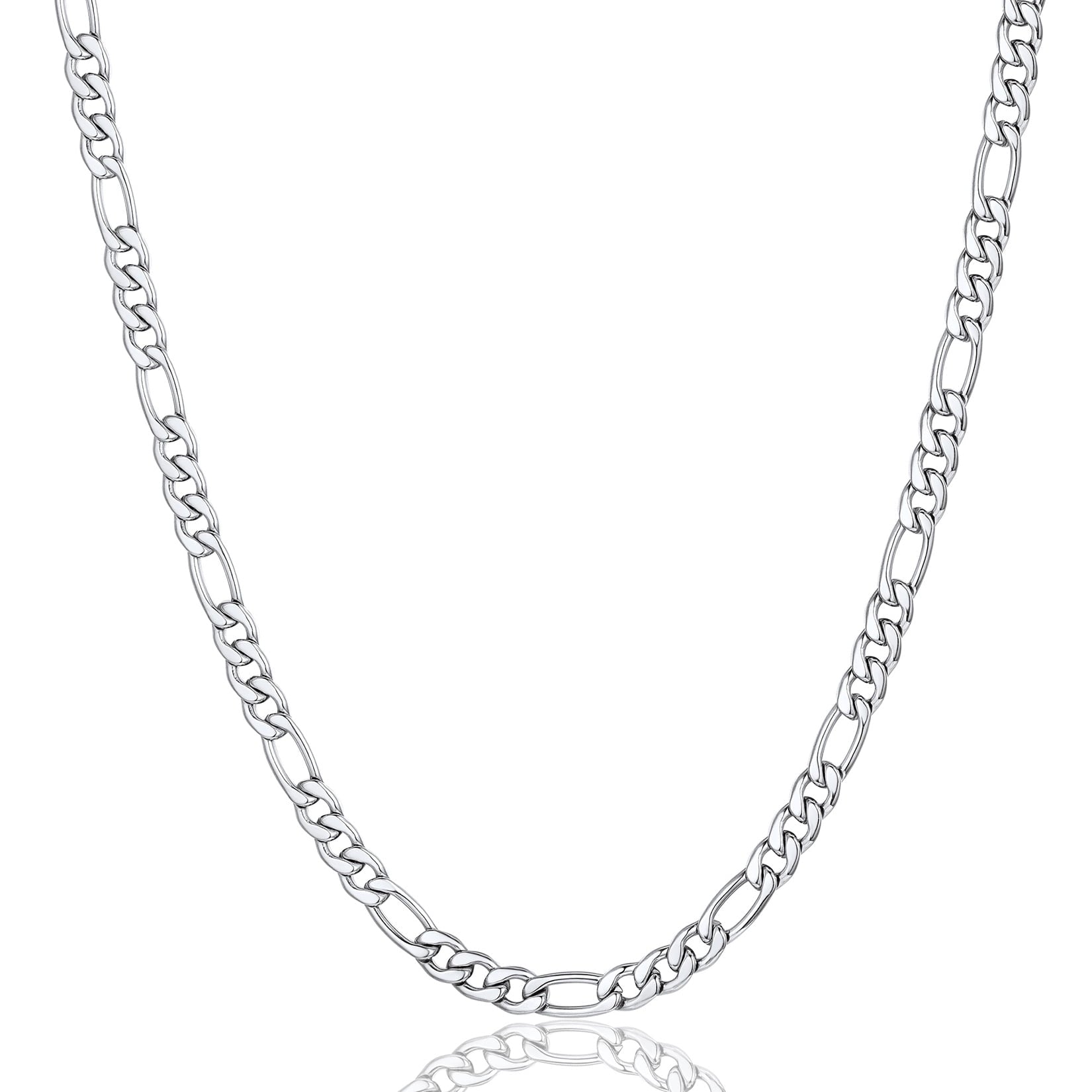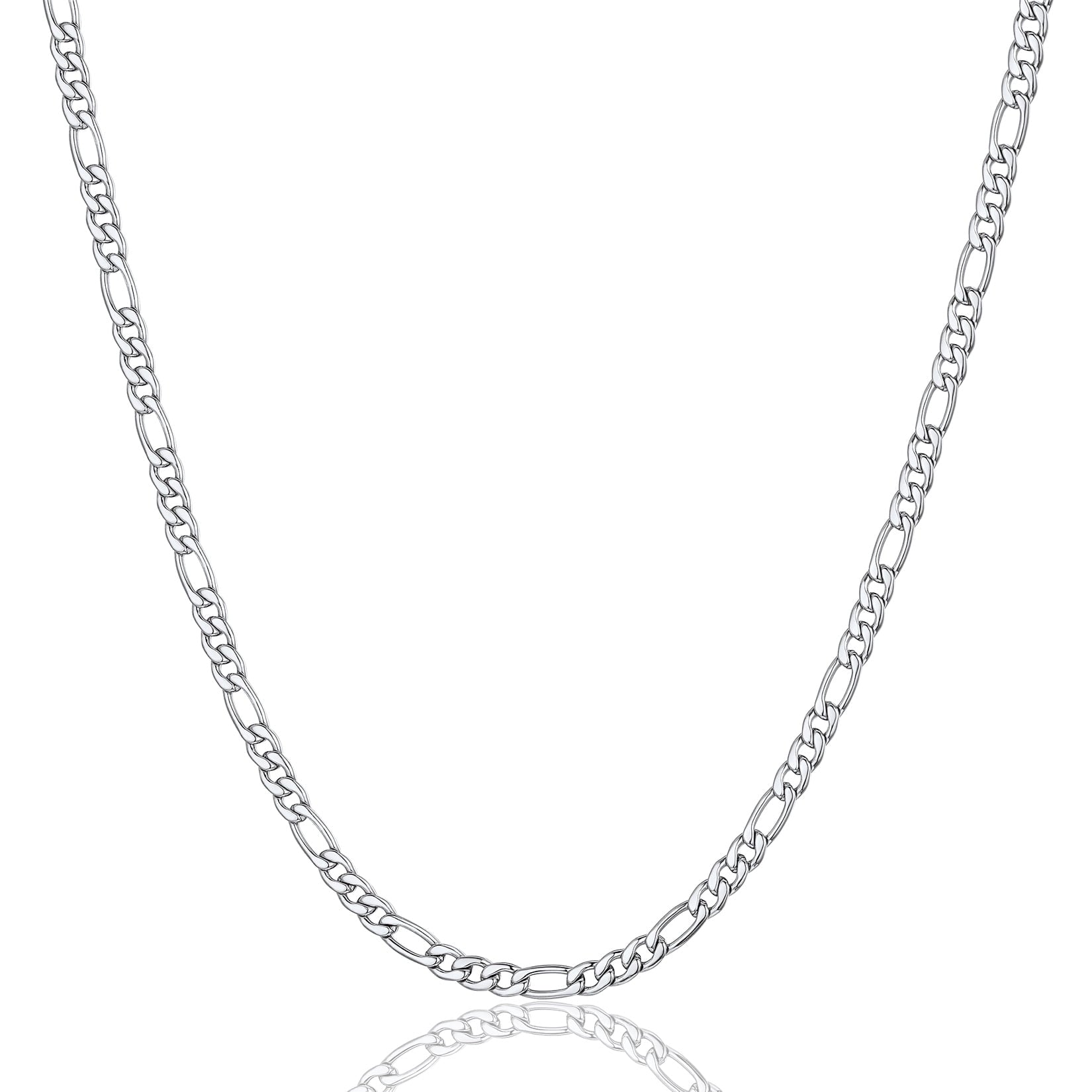 NECKLACE FOR MENS/WOMENS -- Crafted in 316L stainless steel. This mens/womens figaro chain measures 3mm wide and available in your choice of length 18 - 30 inches. Includes a durable lobster clasp to ensure your chain stays secure at all times. It is designed and crafted to have the perfect weight, length, and shine, creating an men's accessory that can be worn with anything.