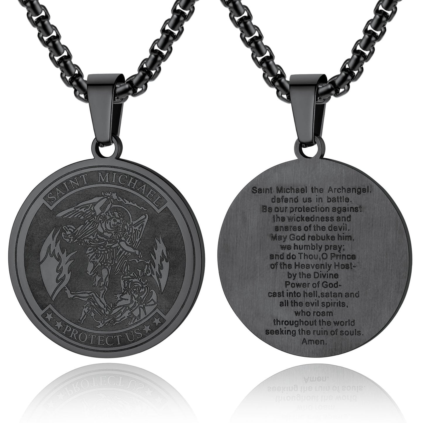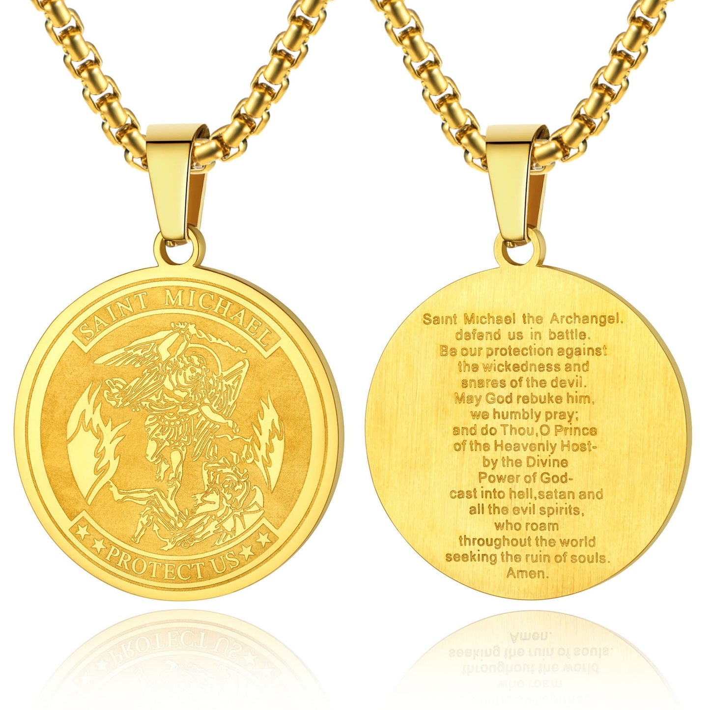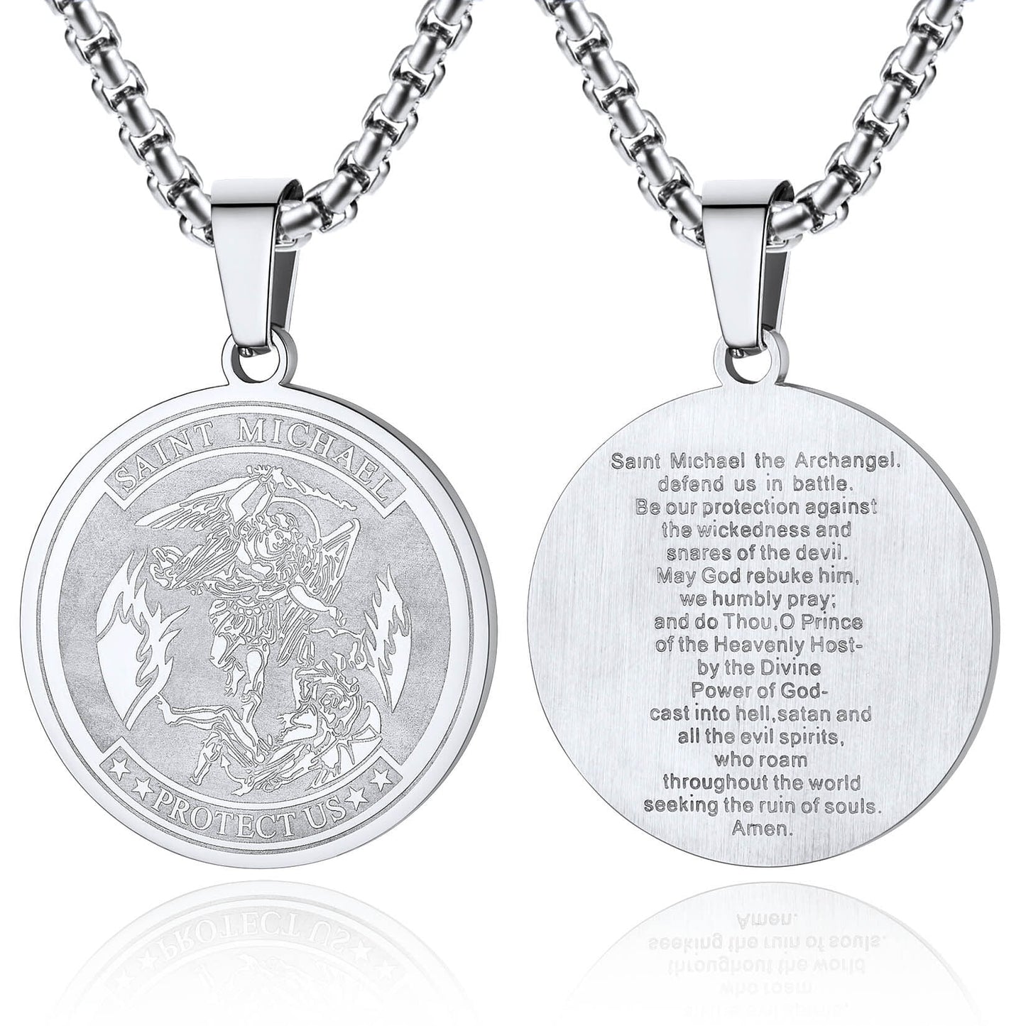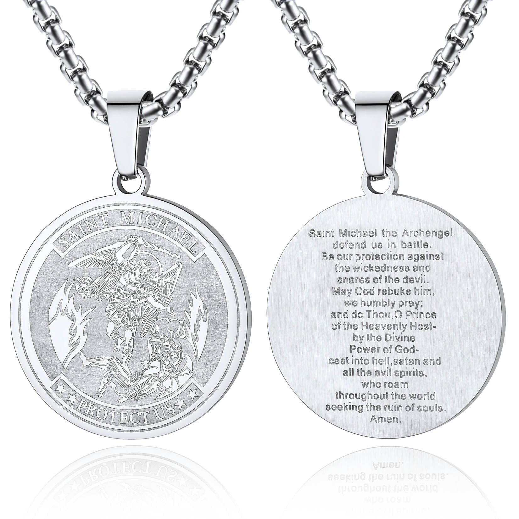ChainsPro Men Saint Michael Pendant Necklace Full Prayer Stainless Steel Protection Archangel Medallion