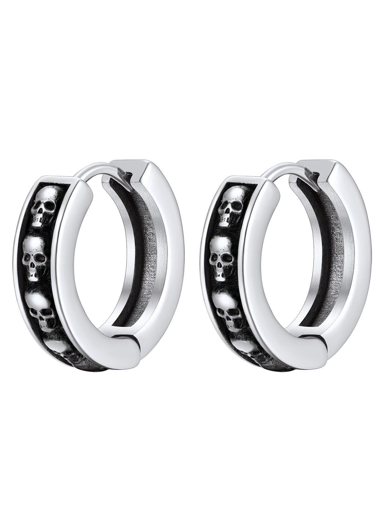 ChainsPro Norse Viking Runes Hoop Earrings for Men Stainless Steel Huggie Hoop Earring Norse Mythology Jewelry Gifts