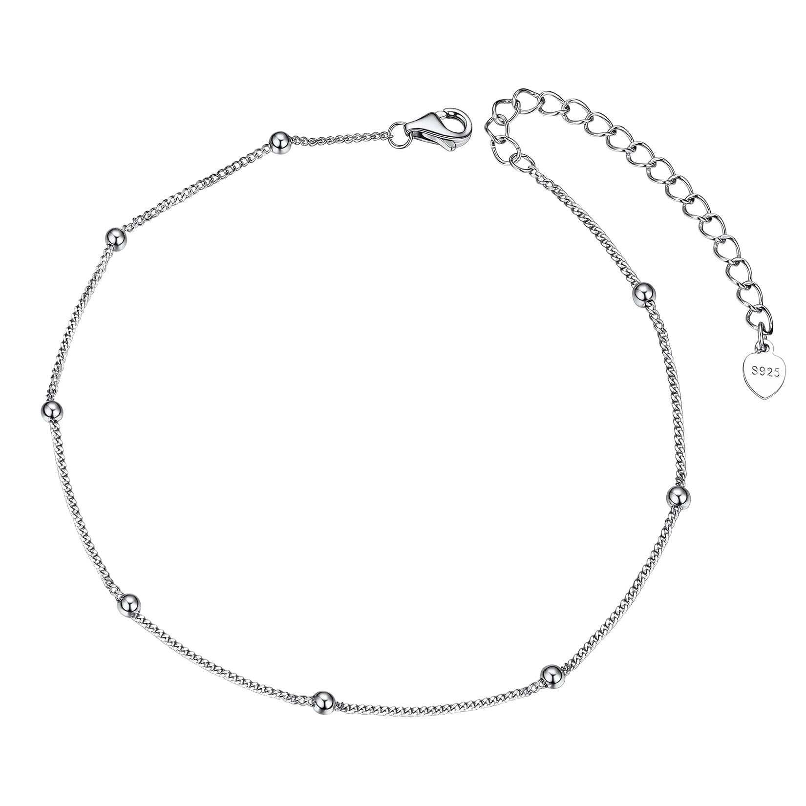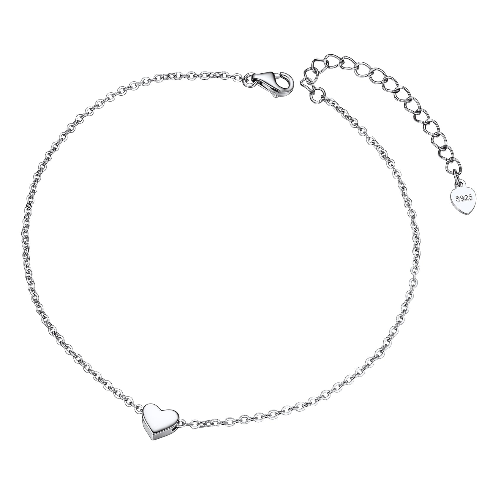 ChainsPro Sterling Silver Anklet Chain Silver Anklets Women Heart Ankle Bracelets Silver 925