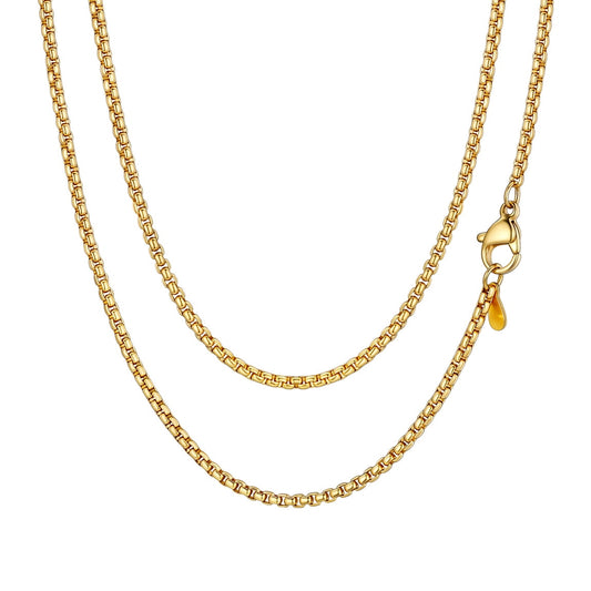 ChainsPro 3mm Men Necklace Box Chain 14K Gold Plated Stainless Steel Chain Necklace for Men Women